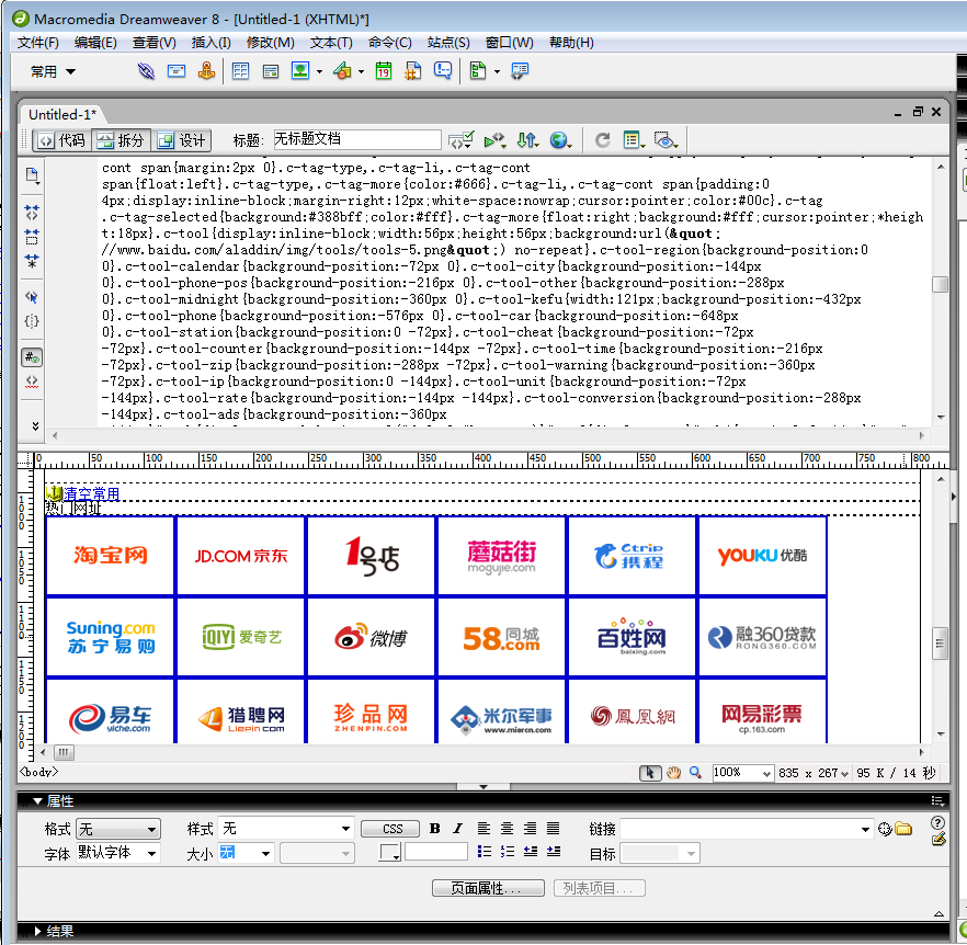 (3)編輯區分代碼、拆分、設計三個部分,一般點擊到拆成狀態就可以,這樣的話可以同時看到排版效果和代碼兩種(下面是設計區,上面看到有默認代碼的部分是代碼區),把你的鼠標點擊一下下面的設計區,然后把內容復制到這一塊。