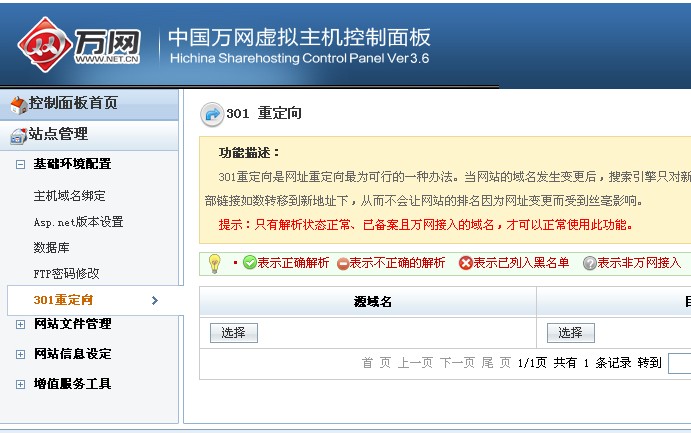 標題名稱:萬網M3型Windows虛擬主機如何利用后臺控制面板進行301重定向