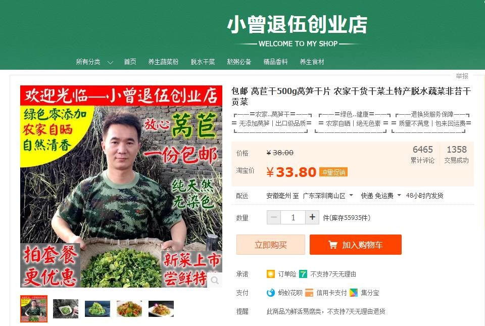 在農(nóng)產(chǎn)品板塊,退伍兵,返鄉(xiāng)創(chuàng)業(yè)大學生,憨厚的老農(nóng)等人設(shè)被發(fā)掘出來,不排除真有這些人的存在,但大部分都是專業(yè)電商團隊的作品。