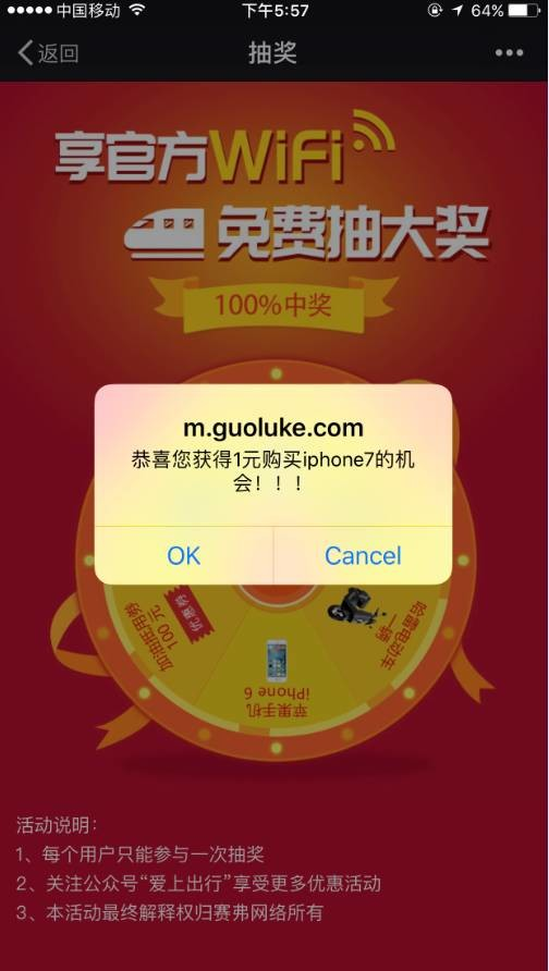 剛關(guān)注玩公眾號突然蹦出一個抽獎頁面——