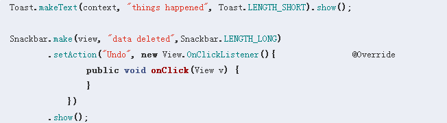 最初我想當(dāng)然的以為,那些出現(xiàn)在屏幕正中間、黑色半透明底色,顯示文字或圖案的東西叫做 Toast;而那些自帶操作項(xiàng),可以滑動(dòng)或點(diǎn)擊刪除消息的東西則是 Snackbar。但實(shí)際上,通過位置、顏色、是否帶操作和如何消失都無法準(zhǔn)確定義它們。