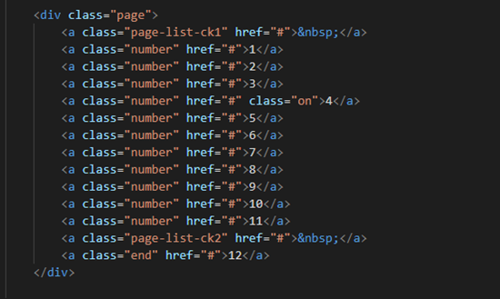 由圖可以看到,有具體的分頁項(xiàng),還有上一頁下一頁和最后一頁(圖中 12),下面是具體實(shí)現(xiàn)這個(gè)分頁列表的代碼: