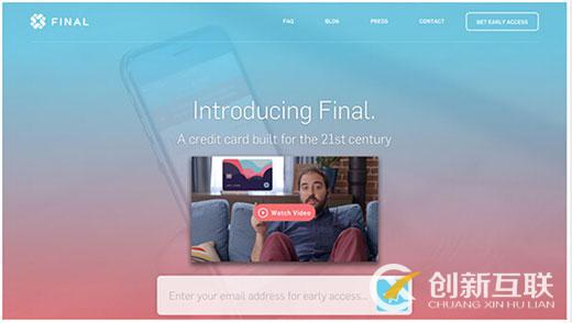 漸變色的網站色調與上面所說的繽紛色的網站風格有些類似,區別只是在與多少種顏色的搭配,漸變色通常強調不超過兩種顏色的漸變,否則會引起顏色混亂的頁面視覺體驗。