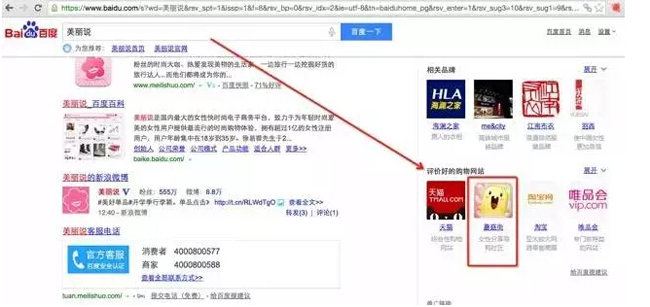 原來,百度搜索美麗說右側(cè)出現(xiàn)的蘑菇街logo(還是3年前的導(dǎo)購(gòu)時(shí)期的牙牙logo,現(xiàn)在電商紅色新logo)不對(duì)。也許對(duì)流量影響不是很大,但從品牌戰(zhàn)略等高度來看就不能容忍的。可是這又不是我干的,與我不加薪有毛關(guān)系啊!!!