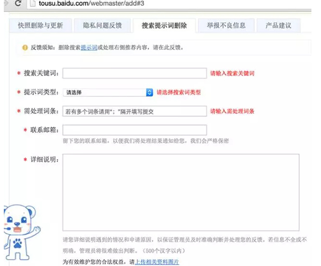 注意項(xiàng)事:一般來說,投訴的內(nèi)容都是對(duì)自己不利的、錯(cuò)誤的,大家要詳細(xì)寫明投訴原因外,盡量通過相關(guān)資料和圖片來為自己佐證,比如:正確的圖片,最好是官網(wǎng)首頁(yè)截圖。大小別超過3M。
